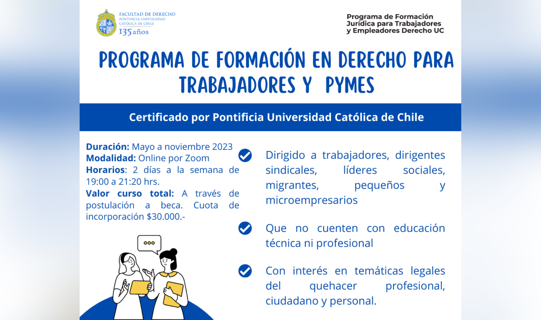 Capacitaciones Programa anual "Formación en Derecho para Trabajadores y PYMES" abre sus inscripciones
