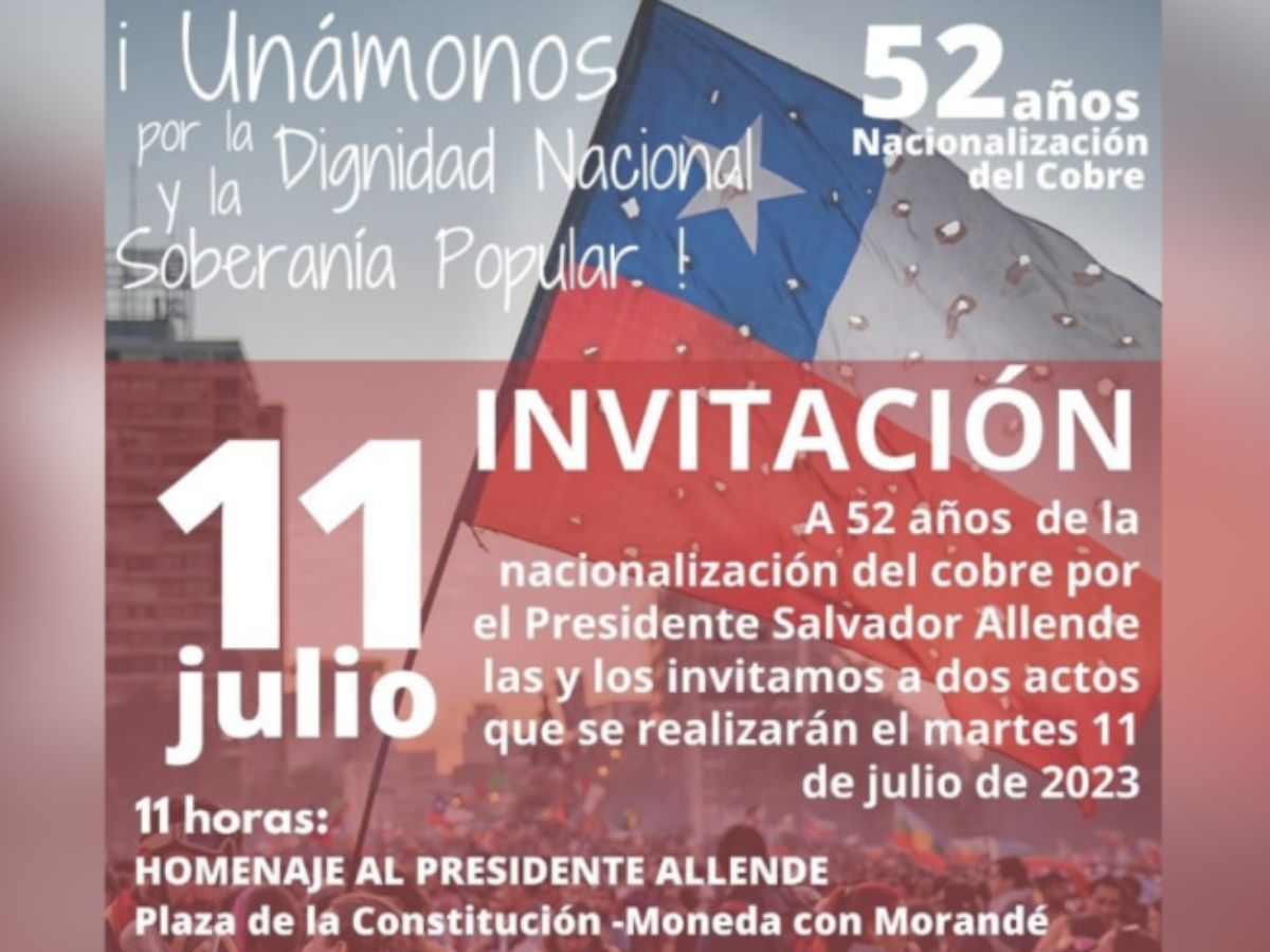 Actividades Central Clasista invita a actividades en el 52º aniversario de la nacionalización del cobre