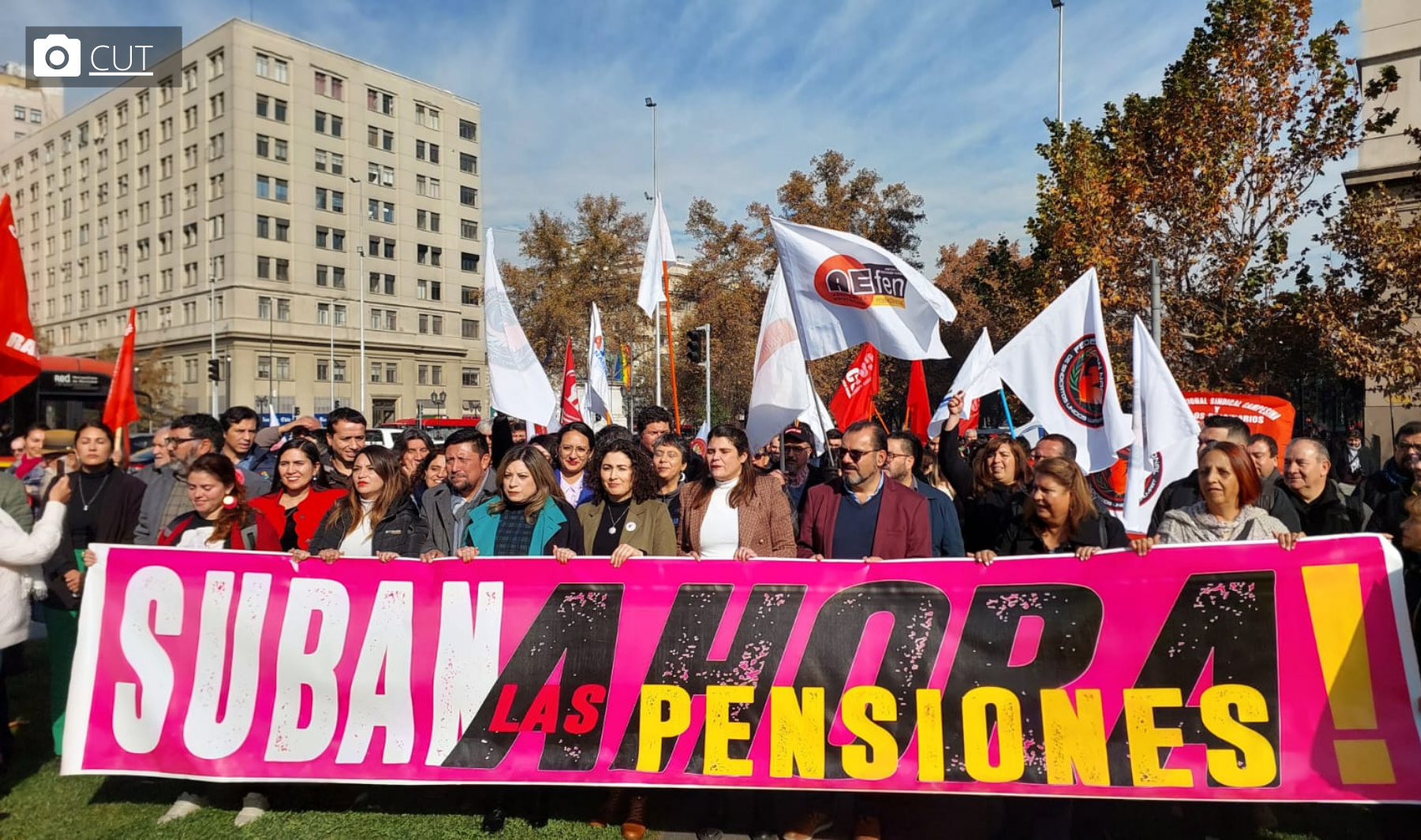 Terminar con el negocio de las AFP a costa de los ahorros de las y los trabajadores, asegurar que el Estado cumpla su obligación de garantizar el derecho a la seguridad social, que empleadores hagan su aporte al sistema de pensiones y generar mecanismos para que ninguna pensión se entregue bajo la línea de la pobreza, son las principales demandas expuestas en el escrito. [08 de junio 2023] A través de una carta-manifiesto entregada hoy al Presidente de la República, dirigentes sindicales afiliados en la Central Unitaria de Trabajadores y Trabajadoras (CUT), representantes de la sociedad civil y alcaldes de la Región Metropolitana, llamaron a dar urgencia a una reforma previsional que garantice el derecho a la seguridad social. “Llevamos 12 años hablando una Reforma Pensiones. Nosotros necesitamos un sistema que nos permita entregar pensiones dignas para las y los trabajadores, quienes han entregado toda su vida laboral para poder tener júbilo. Esto en Chile no existe”, señaló el presidente de la CUT, David Acuña, al momento de la entrega del documento. En la carta, los actores firmantes llaman al Gobierno y al Parlamento a legislar de forma urgente “los cambios que se requieran para subir los ingresos de todas y todos los actuales y futuros pensionados”, enfatizando en que para ello es necesario, en primer lugar, terminar con el negocio de las AFP: “mientras millones de personas sobreviven con pensiones miserables y los fondos de pensiones anotan importantes pérdidas en contra de todas y todos los chilenos, en los primeros meses del año nuevamente la industria de las AFP suma ganancias históricas”. Además, los actores firmantes exponen que es preciso una reforma que asegure que el Estado cumpla su obligación de garantizar el derecho a la seguridad social, que empleadores hagan su aporte al sistema de pensiones y generar mecanismos para que ninguna pensión se entregue bajo la línea de la pobreza. La carta, titulada “Manifiesto por mejores pensiones AHORA”, fue firmada en acto participativo por el presidente de la CUT, concejales, organizaciones de la sociedad civil y los alcaldes y alcandesas de las comunas de Estación Central, Lo Espejo, Pudahuel, Santiago, Independencia, Quinta Normal, Renca, San Miguel, El Bosque, Quilicura, Macul, Melipilla y Pedro Aguirre Cerda.]]>