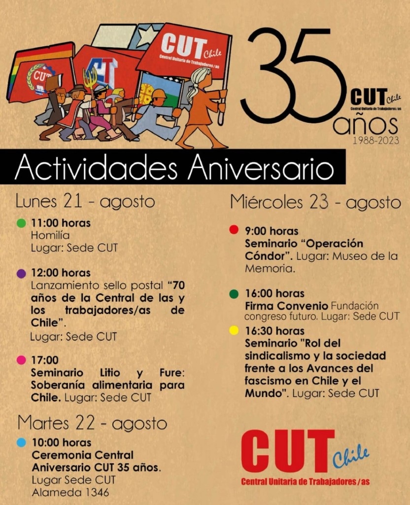 Aquí puedes revisar las actividades que se realizarán en la semana del 35° aniversario de la CUT.