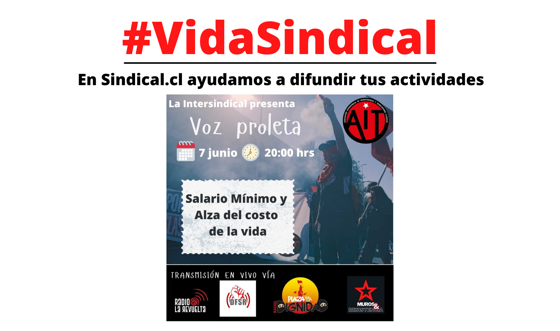 Recuerda que puedes enviarnos las actividades de tu sindicato para que difundamos en Sindical.cl:
